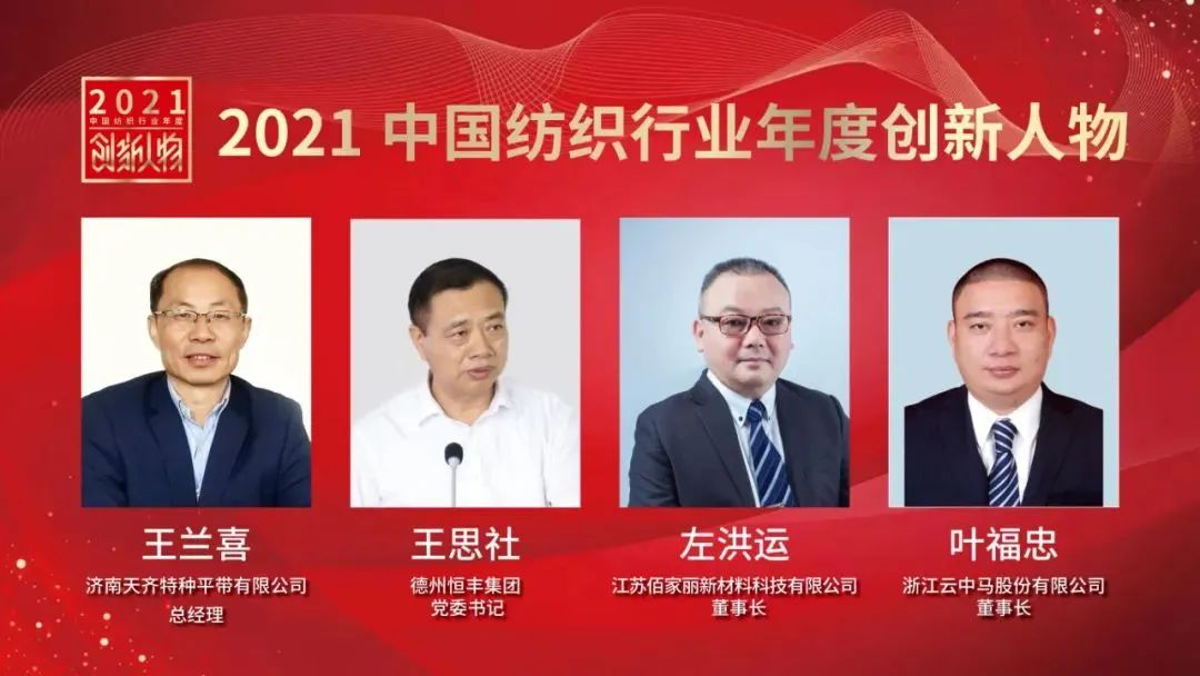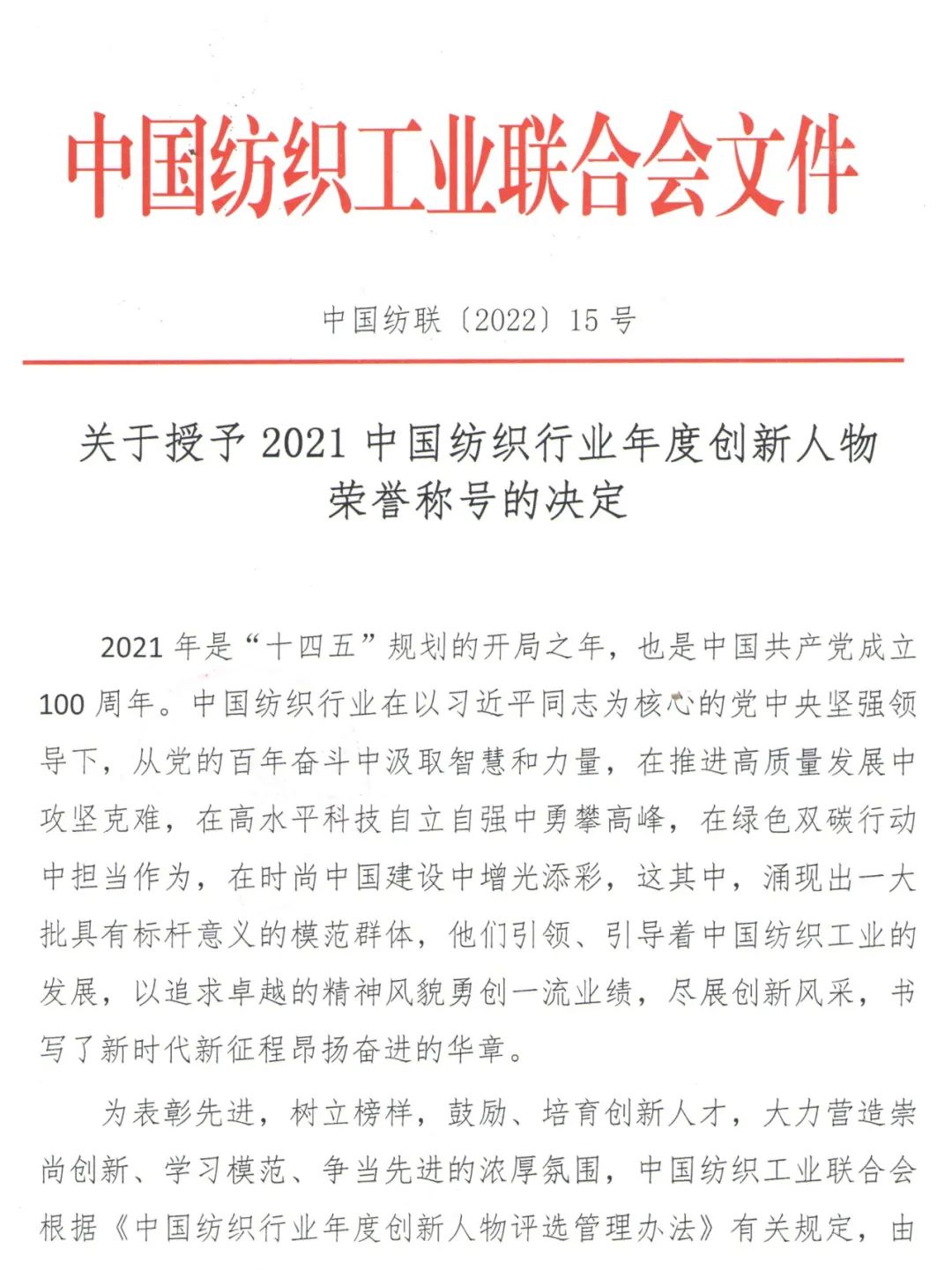 董事長(cháng)孫平范榮獲“2021中國紡織行業(yè)年度創(chuàng  )新人物”